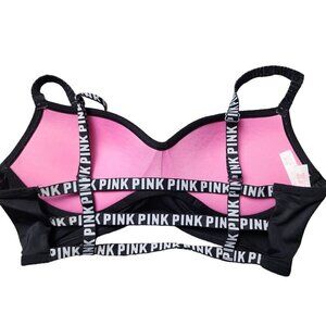 NEW PINK Victoria's Secret Bralette Black Logo Strappy Back Women's Medium