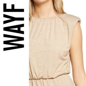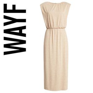 NEW Padded Shoulder Midi Dress WAYF XL in Sand