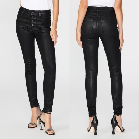 NEW Paige Black Coated Button Front High Rise Jeans Size 23 Hoxton Ultra Skinny