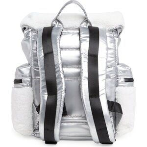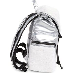 Backpack In Silver Polyester And Polyurethane and Black Hardware With Two Side Zip Pockets & Shearling Trims, two Interior Design open Pocket one closes with Velcro