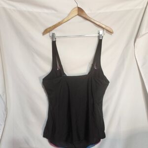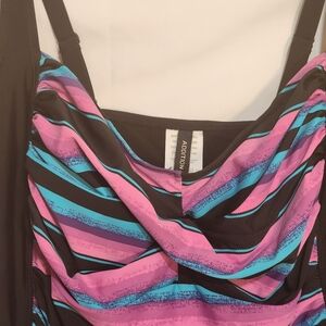 NEW Penningtons Addition Elle Black Multi Pink & Blue Ruched Tankini Top Size 2X