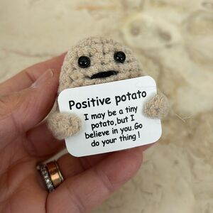 Brand new, crocheted little potato, with a supportive message. This little Positive Potato says: “I may be a tiny potato, but I believe in you. Go do your thing!”