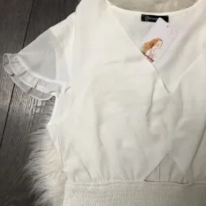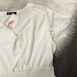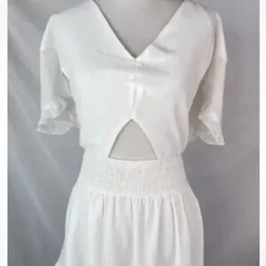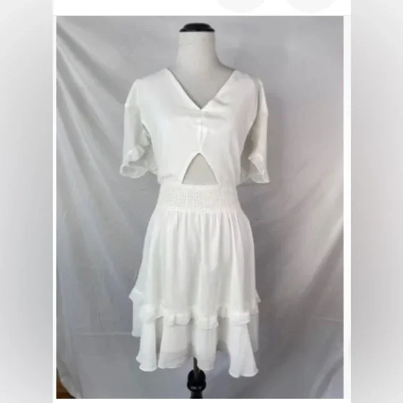 NEW Pretty Garden Medium large Dress White Cut Out Layered Chiffon Empire Waist