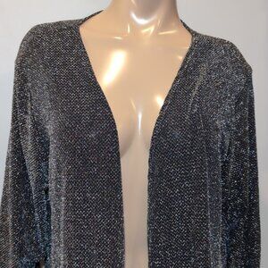 NEW Prospect Blvd Lurex Cardigan Metallic Side Slit Stretchy Open Front Evening