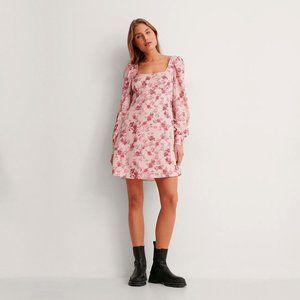 NEW! Puff Sleeve Satin Mini Fit and Flare Dress pink tone, Size EU 36 (US 4)