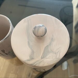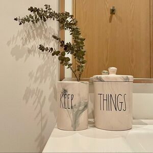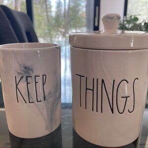 Set of 2 : Rae Dunn "THINGS" Marble Container With Lid and “KEEP” cup !
