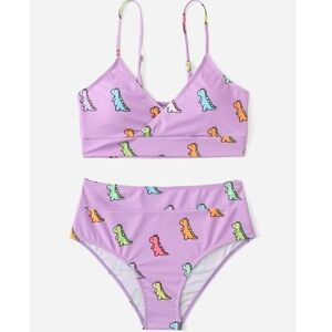 NEW ROMWE Cartoon Dino Print High Waist Bikini - S & M