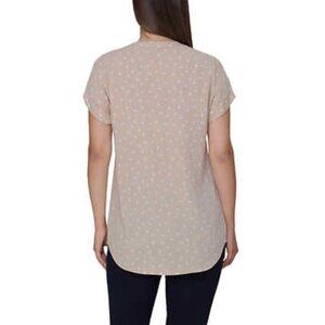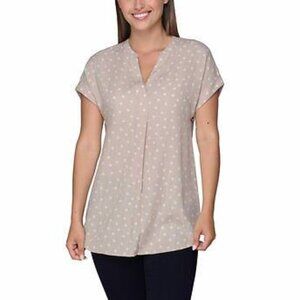 NEW Rachel Roy Short Sleeve V-Neck Tunic Top | Tan with Dots