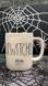 NEW Rae Dunn “BEWITCHED” Lime Green Lined White Ceramic Halloween Coffee Mug