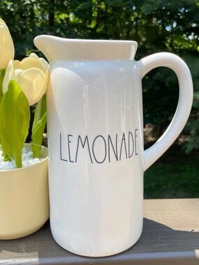 Super cute ceramic pitcher perfect for serving fresh lemonade! Features signature Rae Dunn Long Lettering and a farmhouse style.