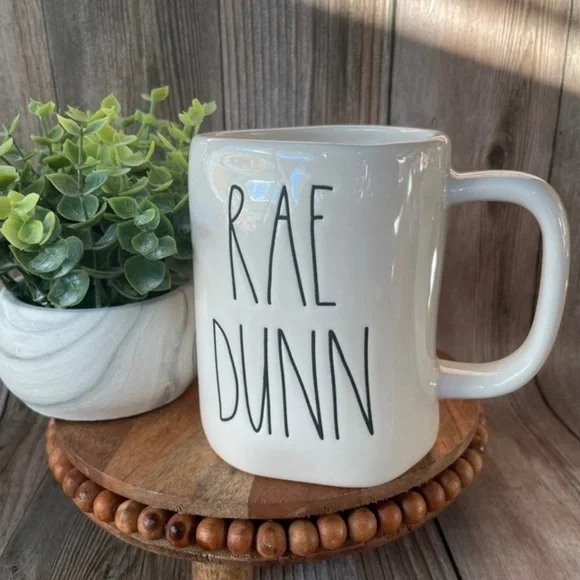 Enjoy your favorite beverage in this elegant Rae Dunn white ceramic mug. Its minimalist design adds a touch of sophistication to your dining experience.