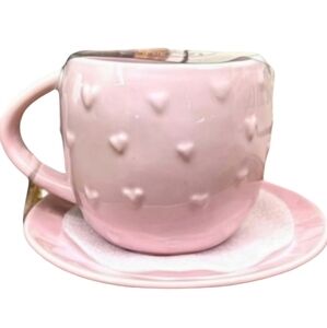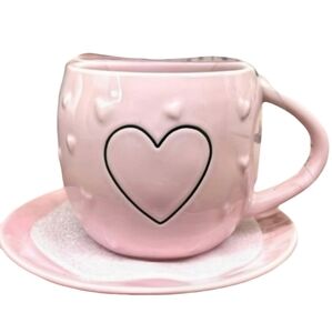 Brand new Rae Dunn Valentine's heart cup and saucer. Pink in color with raised hearts.