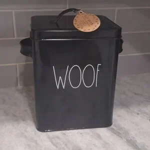 One NEW - Rae Dunn - WOOF - Metal pet food storage container/bin - Artisan Collection.