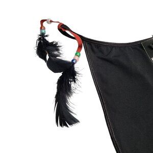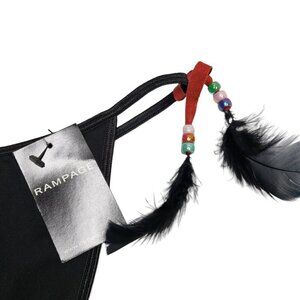 NEW Rampage Black Thong Underwear Feather Tie On Detail Women's Size Small