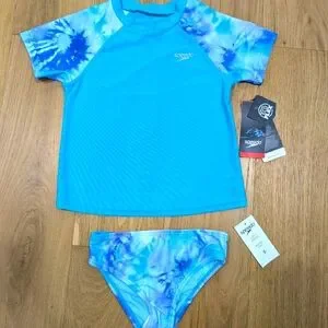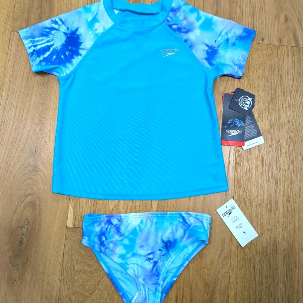 The Speedo Kids' UPF Rashguard Set combines style and durability for your little one's water activities. Crafted with a comfortable recycled fabric with an Ultraviolet Protection Factor (UPF) of 50+, the swimwear for kids offers protection against 98% of harmful UVA and UVB rays during hot sunny days.