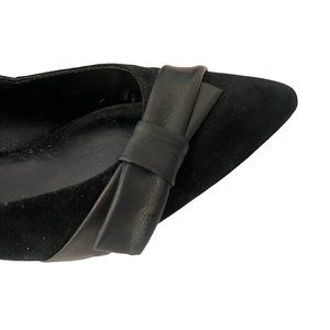 Elevate your style with these genuine suede leather slingback pumps adorned with a soft leather bow accent on the front. Crafted with exceptional quality, these pumps exude sophistication.