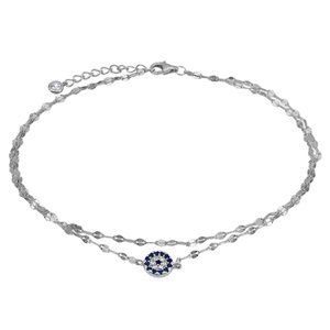 NEW! Solid 925 Sterling Silver Double Layer Evil Eye Ankle Bracelet, Summer Jewelry