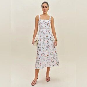 NEW Reformation Everett Linen Midi Dress Corsini White Multi Floral | US 0 UK 4