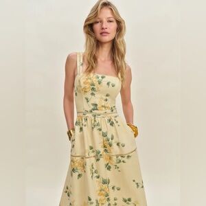 NEW Reformation Everett Linen Midi Dress Radiance Yellow Floral | US 2 UK 6