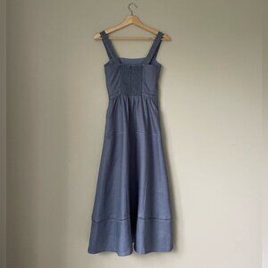 NEW Reformation Everett Linen Sleeveless Midi Dress Cornflower Blue | US 0 UK 4