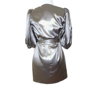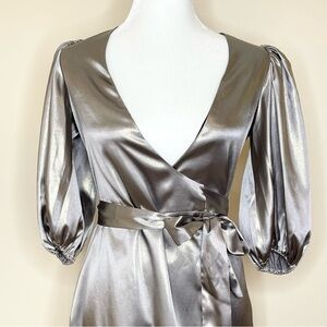 NEW Reformation Metallic Taupe Terezia Wrap Mini Dress US XS