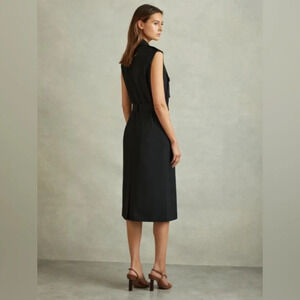 NEW Reiss Kimora Wool Blend Double Breasted Tie Midi Dress Black | UK 8 / US 4