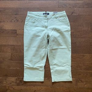 - Light mint green coloured Capri / cropped jeans. Looks cute with a white or black shirt, great way to change up your outfits a little bit. Unfortunately too small for me.