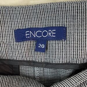 Reitmans Encore Bootcut Dress Pants / Trousers. Women's tag size 20 (see actual measurements in photos). Polyester, rayon, spandex blend. Gray tiny houndstooth pattern. Folded cuffs. Classic fit with boot cut leg. Slim at knee. Sits at the waist. Front pockets, fake back pockets.