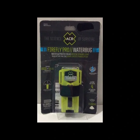 Brand new, sealed ACR Firefly Pro/Waterbug water activated solas rescue strobe light.