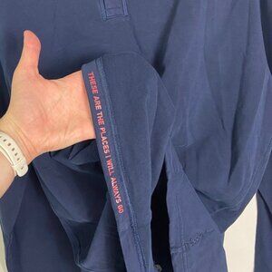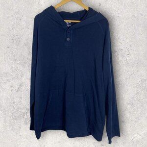 Rhone Bolinas Hoodie in Blue and Men's Size X-Large. 95% cotton and 5% spandex. From 2021. Has adjustable cinch waist. Front kangaroo pocket. Hooded with henley button closure. Lightweight. Laid-back appeal. Raglan sleeves. Machine washable. Made in China. Brand new without tags! No flaws.