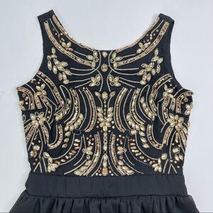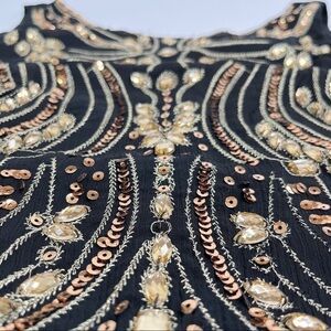 NEW Ricki’s Gold Jewelled Sequinned Glam Sheer Overlay Long Fancy Dress Gown