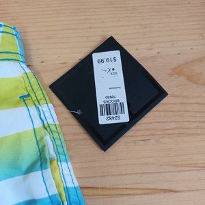 This new with tags Ripzone swim trunks has two hip side pockets, and a velcro left thigh pocket.