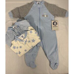 NEW SET OF 3 Gerber Organic Cotton Baby Sleep'n'Plays - Blue Stars 0-3 months