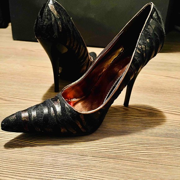 *BRAND NEW in BOX* SUPER SEXY Black Velvet & Shiny Gold Tiger-Stripe patterned Stiletto 3" Heels