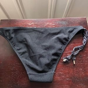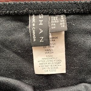New and absolutely perfect condition, Size 6 bikini top with padding and bottoms Size 8 from Shan, fabric is textured and the top has a circular stitching detail (see photos) metal clasp, the bottoms have two pieces of drawstring and mesh with silver Shan engraved end caps that dangle on the side, Made in Canada 🇨🇦, bust is 20” and the waist laid flat is 14” but will stretch of course!