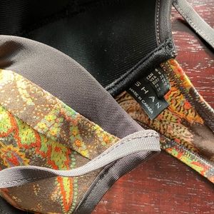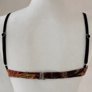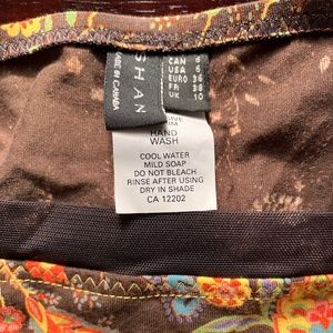 New and absolutely perfect, Size 6 brown floral bikini top Size 6 and matching bottoms Size 6 from Shan, both pieces have brown tulle detail, bikini top has underwire and slight padding, adjustable straps and a silver clasp. Bust is 19.5” and waist bottoms flat is 13.5” but they will both stretch! Made in Canada 🇨🇦