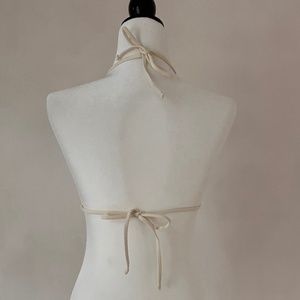 New and perfect condition, Size 10 bikini top and Size 8 bottoms from Shan, material has a slight shimmer to it, silver mesh detailing on the top and bottoms have a Shan tag at the back, Made in Canada 🇨🇦, bust is 19” and waist is 14” laid flat, but will stretch of course! There’s also the matching silver mesh sarong!