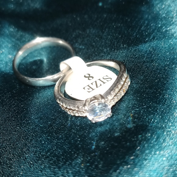 NEW SILVER WEDDING RING SET