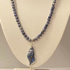 NEW SODALITE Genuine crystal beads necklace with seashell charm
