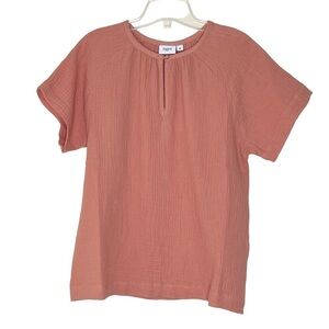 This Canyon Clay-hued top is made from lightweight and breezy gauze fabric, ideal for sweltering summer weather.