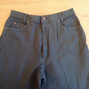 Three front waist pockets with riveted corners, belt loops. Nicely detailed.