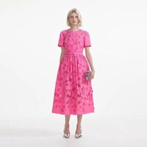NEW Self-Portrait Cotton Lace Midi Dress Pink SS24 | UK 8 / US 4