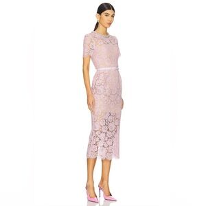 NEW Self-Portrait Fine Lace Pearl Midi Dress in Pink | UK 8 / US 4