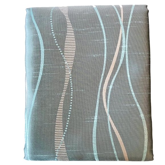 Set of 2 Cassino Home Tab Back Panel Curtains with an elegant vertical wave pattern in a soft turquoise color. While the label indicates "turquoise," it appears more of a delicate silvery pale green hue. The fabric possesses a subtle satin finish for added style. Each curtain is thoughtfully designed with 7 tabs at the back for easy installation on the curtain rod..