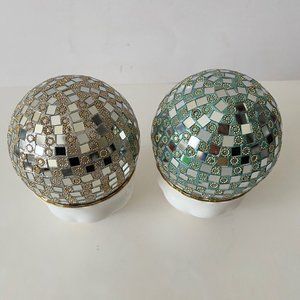 NEW Set of 2 Large Glass Mirror Disco Ball Ornaments with Rhinestones