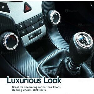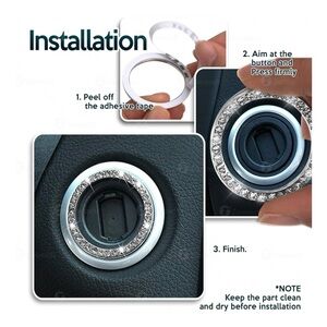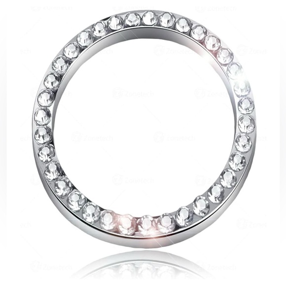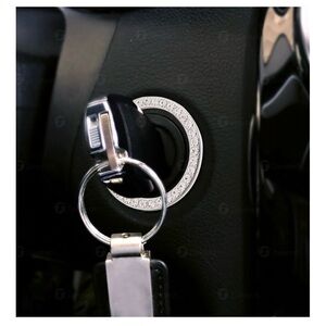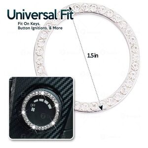 Chrystal Bling Ring Emblem Sticker- Rhinestone Start Engine Ignition Button. Car Key Knob Interior Gift-Push Button Auto Decorative Decal-Unique Silver Sparkly Vehicle Rings