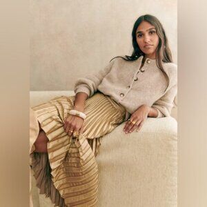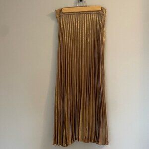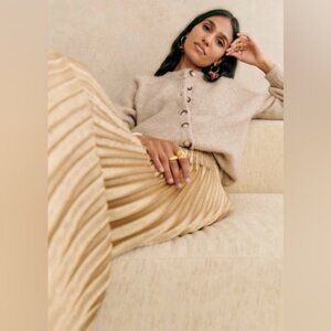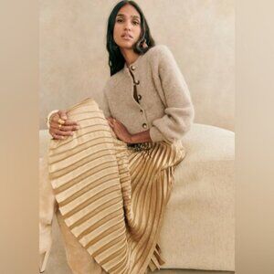 NEW Sezane Dune Midi Pleated Skirt Gold | Size 36 / US 4