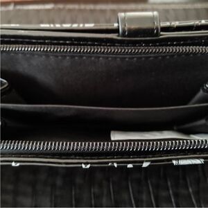 Snap it open to find eleven credit card slots, one clear plastic photo id slot, a large money pocket and two additional large pockets. Flip this wallet over and unzip the back to find two large compartments for change and receipts.