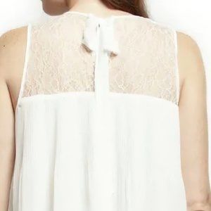A pop of lace on the back and a tie back and soft pleats brings out your natural feminine allure in this flowy top that can be worn alone or as a layering staple.