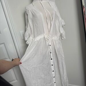 NEW Sheer Button-Down Cover-Up Kaftan Boho Kimono Coastal Cowgirl prarie Os
